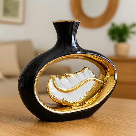 Black & Gold Leaf Frame Vase